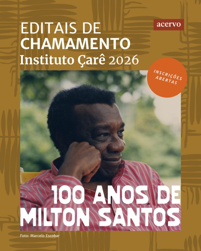 Em 2026, Milton Santos, um dos mais importantes intelectuais brasileiros, completaria 100 anos de idade. Neste sentido, o Instituto Çarê e o IEB/USP convidam os interessados a desenvolver pesquisas a partir do acervo pessoal do geógrafo, salvaguardado pelo Arquivo do IEB-USP.